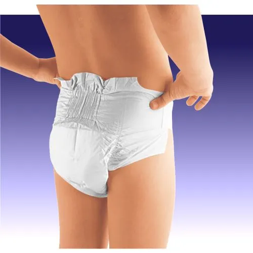 Die atmungsaktive Inkontinenzhose für Kinder mit Harn- und Stuhlinkontinenz. Ein anatomisch geformtes Saugkissen aus Zellstoff mit Superabsorber. Die spezielle EDS-Schicht sorgt für eine schnelle Verteilung und Aufnahme der Flüssigkeit in den Saugkern. Flüssigkeitsabweisender, seitlicher Auslaufschutz. Elastisches Garn im Schrittbereich schützt vor Flüssigkeitsauslaufen. Elastisches Seitenbündchen. Zwei elastische Klettverschlüsse wiederverschließbar. Farbiges Frontband zum mehrmaligen Befestigen der Klettverschlüsse. Nässeindikator - die Anzeige ändert sich beim Kontakt mit Feuchtigkeit im Inneren des Produktes von gelb auf grün. Atmungsaktive Isolationsschicht aus einem dampfdurchlässigen Material im zentralen Bereich und einem Vlies im Hüftbereich.
