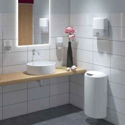 Der Tork Mini Spender für Flüssigseife im Elevation Design eignet sich für Waschräume jeder beliebigen Größe und kann in Kombination mit einer Reihe von Tork Hautpflegeprodukten in versiegelten Flakons verwendet werden. Er ist leicht zu bedienen und gewährleistet eine optimale Hygiene. Elevation Spender zeichnen sich durch ihr modernes, funktionales Design aus, das einen bleibenden Eindruck bei Ihren Gästen hinterlässt.