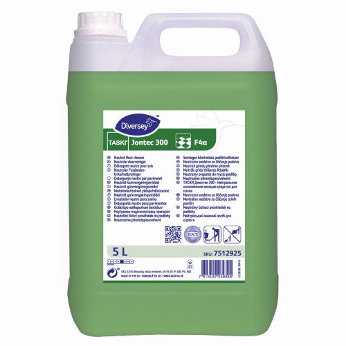 Der TASKI Jontec 300 ist ein niedrigschäumender, neutraler Fußbodenreiniger für alle wasserfesten Hartböden. Geeignet für die manuelle Reinigung und den Einsatz mit Scheuersaugmaschinen.