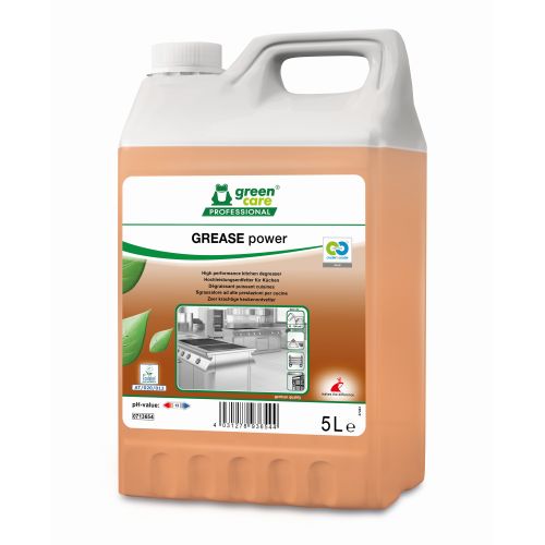 * GREASE power eignet sich zum Einsatz in lebensmittelverarbeitenden Bereichen wie Ausgabetheken, Kutter, Kühlschränke, Spülbecken, Küchengeräte, Dunstabzugshauben, Öfen, Mikrowellengeräte, Konvektomaten, alkalibeständige Fußböden etc.