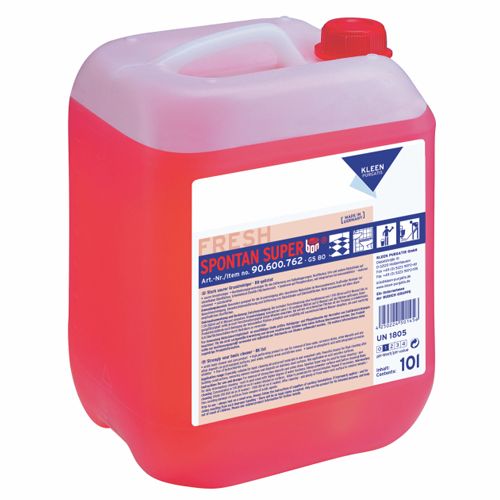 Spontan Super kann zur Grundreinigung als auch zur täglichen Zwischenreinigung z. B. in Bädern mit höherer Wasserhärte eingesetzt werden. Flächen gut vorwässern! Zwischenreinigung: Bei normaler Verschmutzung eine Verdünnung von 1 : 100 (80 ml auf 8 l Wasser) bis zu 1 : 50 (160 ml auf 8 l Wasser) einsetzen. Grundreinigung: konzentriert oder 1 : 10 verdünnt (800 ml auf 8 l Wasser) auf die Flächen auftragen. Reinigungsflüssigkeit sollte je nach Verschmutzungsgrad einige Minuten einwirken. Bei extrem verschmutzten Flächen ist der Vorgang zu wiederholen. Produktrückstände nach Reinigung der behandelten Flächen gründlich und sorgfältig mit ausreichend klarem Wasser abspülen, um auch nachträglich Oberflächenschäden durch Restsäure zu vermeiden.