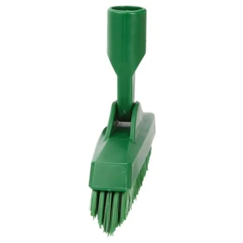 Reinigen Sie mit dem winkelverstellbaren Fugenschrubber effektiv unter Maschinen und Hilfsutensilien sowie dazwischen. Der Schrubber kann sogar mit zum Boden parallelem Stiel verwendet werden. Die in Pfeilform angeordneten Borsten erreichen selbst kleine Spalten und Fugen, während die harte Borstenreihe in der Mitte für eine hohe Reinigungsleistung sorgen.