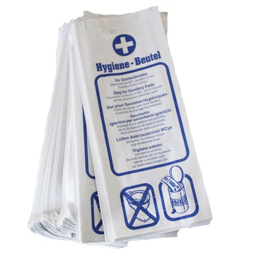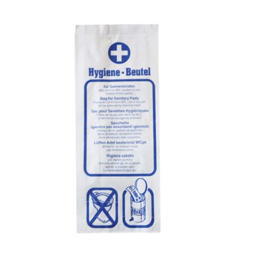 Praktische Hygiene-Beutel aus Papier zur diskreten Entsorgung gebrauchter Damenhygiene-Artikel, wie z.B.: Binden, Slipeinlagen und Tampons.