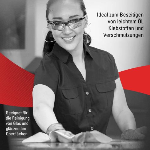 * Ideal zum Entfernen von Leichtöl, Klebstoffen und Ablagerungen. Ebenso eignet es sich für die Reinigung von Glas und glänzenden Oberflächen.
