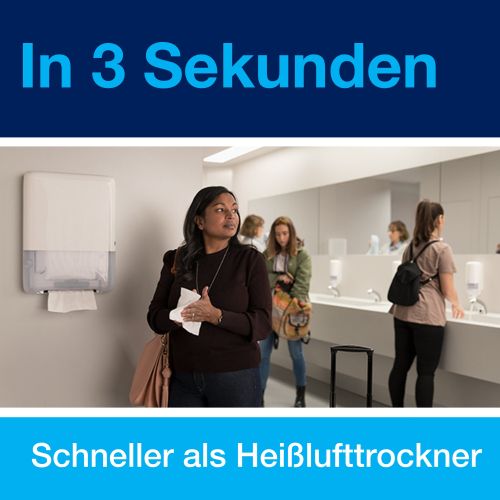 Tork PeakServe: die neueste Innovation für hochfrequentierte Waschräume, in denen das Reinigungspersonal mehr Reinigungsaufwand hat und für einen reibungslosen Besucherdurchlauf sorgen muss. Kompatibel mit dem Tork PeakServe® System für Endlos-Handtücher. Das System verfügt über eine sehr hohe Kapazität von 1.230 Handtüchern, die schnell und ohne Unterbrechung ausgegeben werden und so einen schnellen und reibungslosen Besucherdurchlauf ermöglichen. Die komprimierten Nachfüllungen sind schnell einzulegen, können jederzeit aufgefüllt werden und sind einfach und bequem zu transportieren und zu lagern – damit sich Ihr Personal ganz auf das Reinigen konzentrieren kann.