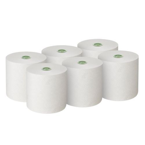 * Jede Papierhandtuchrolle enthält 380 Meter weißes, 1-lagiges Rollenhandtuch, was bis zu 1.520 Blatt an Papierhandtüchern entspricht