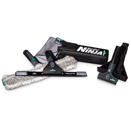 ✓ ErgoTec NINJA Komplett-Set 6in1 mit Einwascher, Fensterwischer, Mikrofaser-Glastuch, Glasschaber, Holster und Bucket on a Belt in herausragender Markenqualität – für hochpräzise Ergebnisse